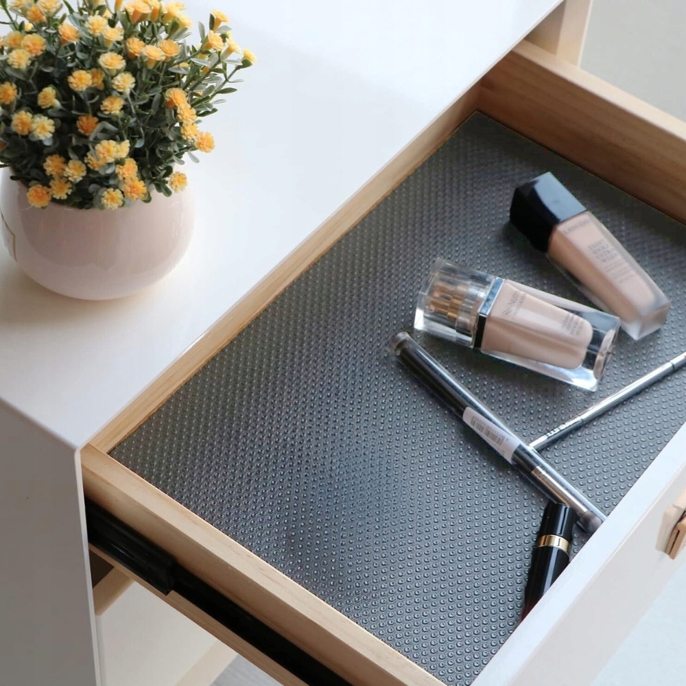 Завдяки спеціальній структурі анти -слизу, MAT запобігає руху об'єктів , що робить пластини, окуляри або косметика залишаються на місці. Це ідеальне рішення для ящиків, шаф, холодильника або навіть полиць взуття!