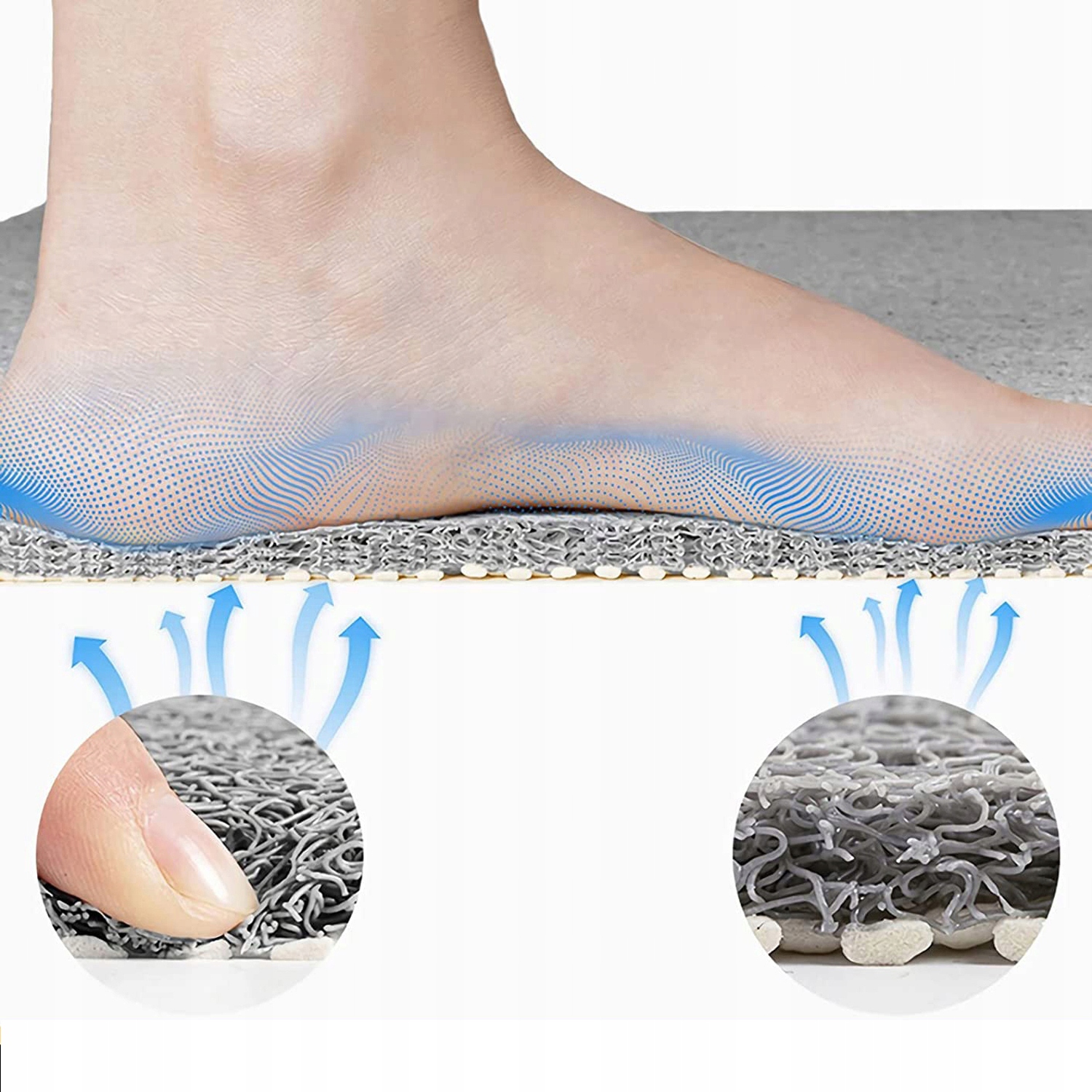 - Оскільки вода тече крізь наші килимки, вода не накопичується та не застоюється, що приваблює цвіль і потребує промивання.
