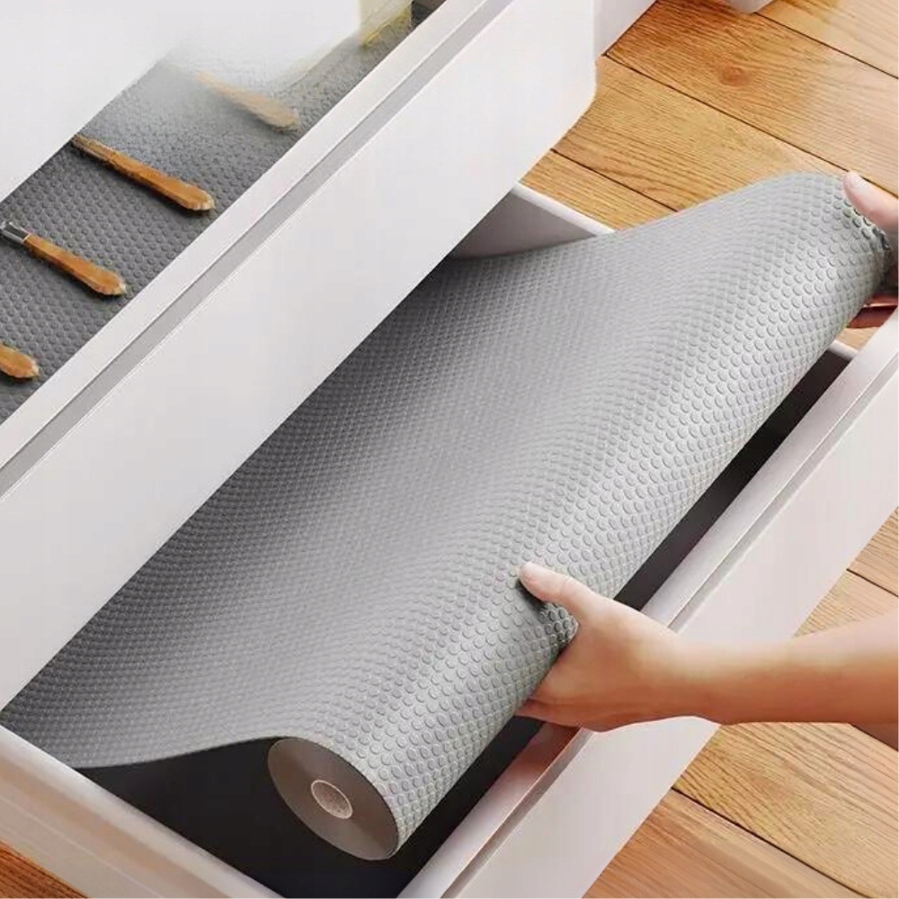 Завдяки спеціальній структурі анти -слизу, MAT запобігає руху об'єктів , що робить пластини, окуляри або косметика залишаються на місці. Це ідеальне рішення для ящиків, шаф, холодильника або навіть полиць взуття!
