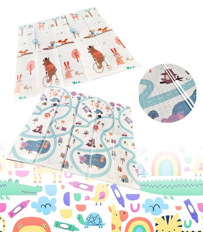 Більше того, килимок має складний, надзвичайно практичний формат. У складеному вигляді займає мало місця, тому легко поміститься в шафі або під ліжком. Його компактна форма дозволяє легко брати його з собою в подорож, на відпочинок, в гості до бабусі та дідуся або на пікнік, надаючи вашій дитині улюблений простір для ігор будь-де.