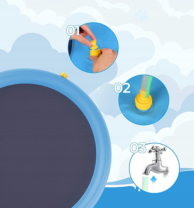 4 > Гарантовані години веселощі на матові Наш фонтан також ідеально підходить для дітей Міцний матеріал- Собакні кігті не жахливі для нього Проста збірка діаметр : 150 см