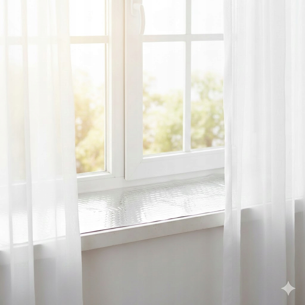Крім того, кам'яне підвіконня значно охолоджує горщики з рослинами, а отже, і їх коріння. Килимок з гумового поролону, що самоклеїться, є відмінним теплоізолятором. Він має закриту коміркову структуру. Завдяки цьому він стійкий до води, цвілі та грибків.