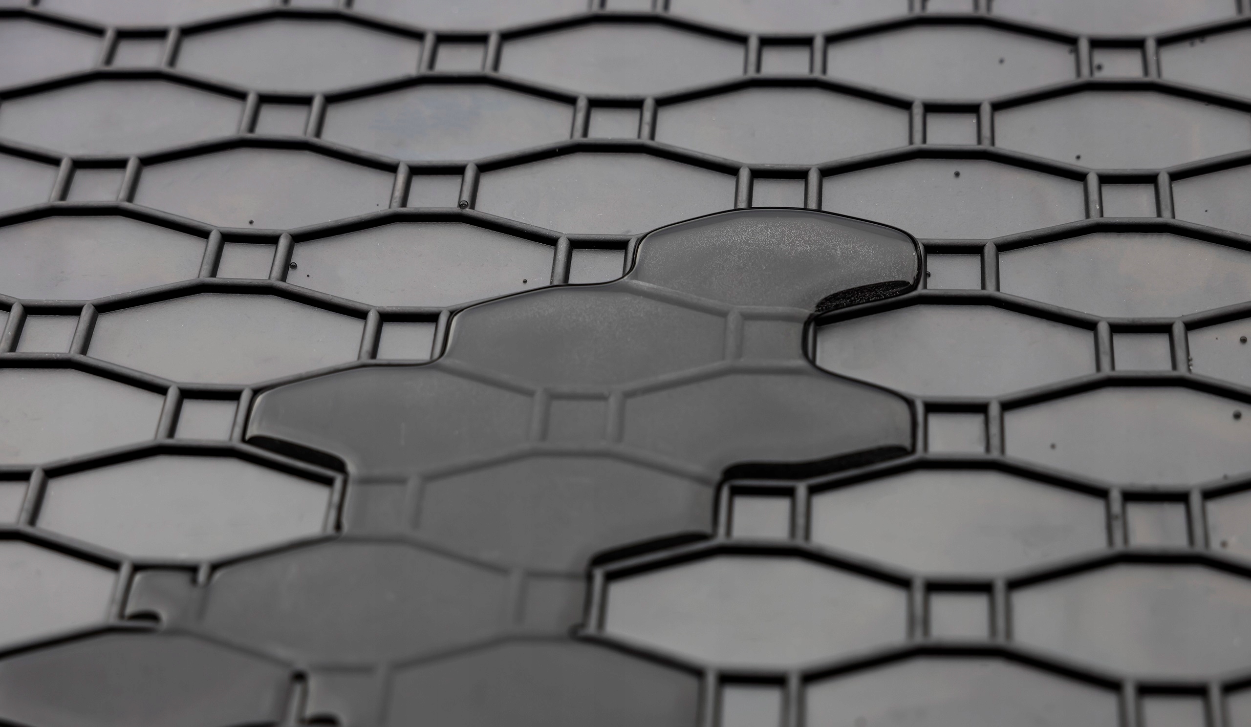 Останній продукт нової лінійки RKK від Rigum – це поєднання практичності з інновація. Завдяки сучасним можливостям килимок ідеально підійшов до форми багажника з урахуванням найважливіших параметрів автомобіля, таких як марка / модель / рік / кузов або версія комплектації багажника. 3D-сканування простору багажника дозволяє відтворити його форму 1:1 і спроектувати килимок. Килимок має унікальний стільниковий візерунок, створений з урахуванням візуальних і практичних аспектів. Килимок був розроблений таким чином, щоб дозволити використовувати точки кріплення в черевику (тиснення на килимку, яке, якщо необхідно, потрібно розрізати, щоб використовувати тримачі сітки). Вставка виготовлена з високоякісної гумової суміші, яка не виділяє неприємного запаху гуми та стійка до фізичних та хімічних факторів.