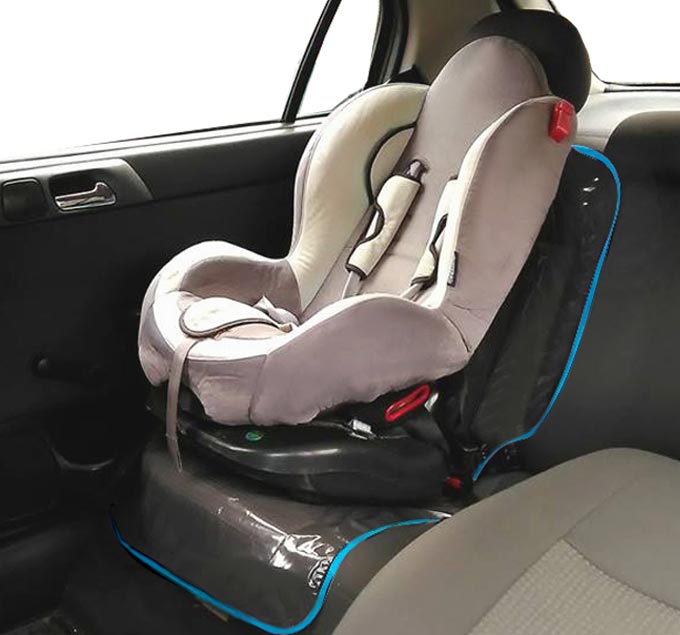 Килимок добре прилягає до сидіння, ефективно захищаючи його від бруду. Має вирізи для ременів безпеки!