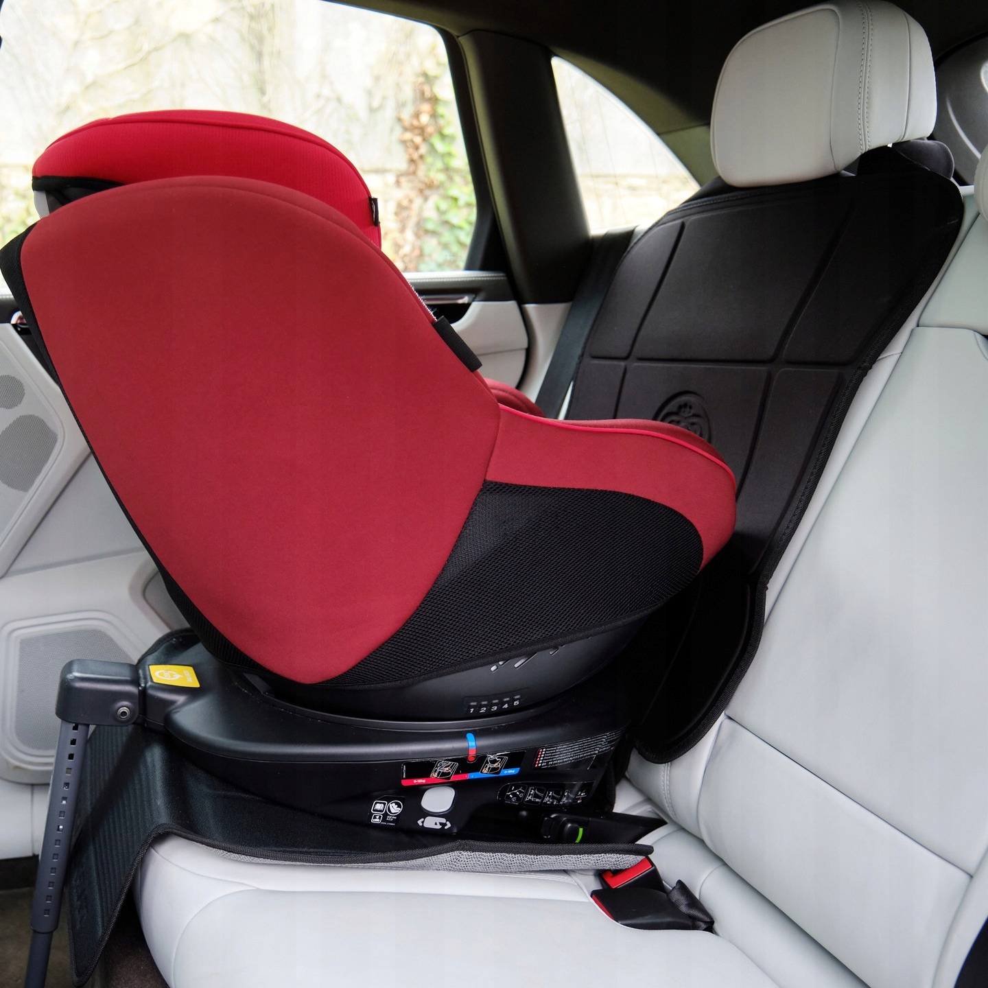 Килимок протиковзкий і запобігає зсуву сидіння. Килимок можна використовувати з сидіннями, встановленими лицьцями вперед і назад.