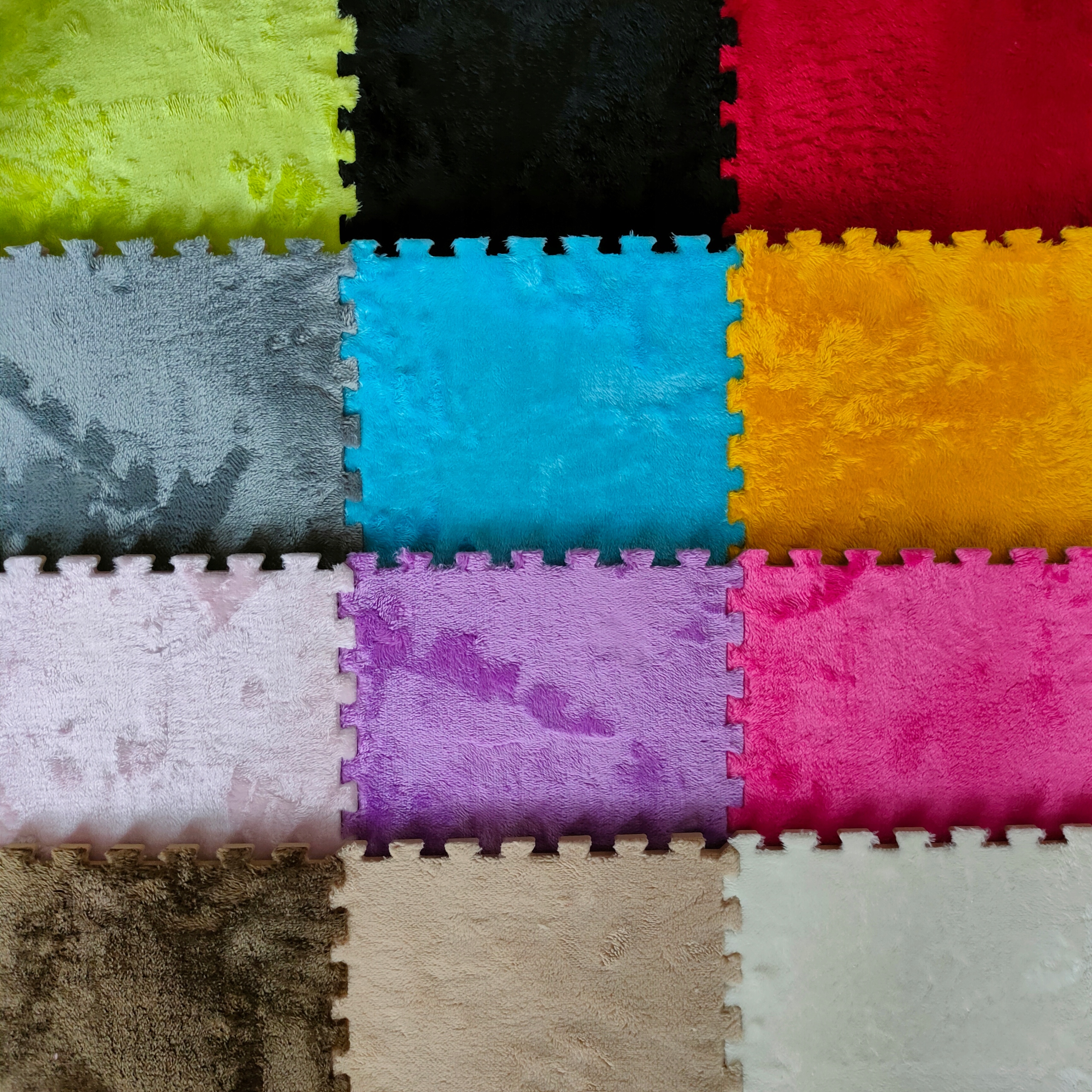 Модульні килимові пазли SHORT - це поєднання м'якої амортизаційної піни з приємним на дотик пухнастим килимом. Вони створюють зручну, холодоізоляційну поверхню, ідеальну для ігор, тренувань і відпочинку.