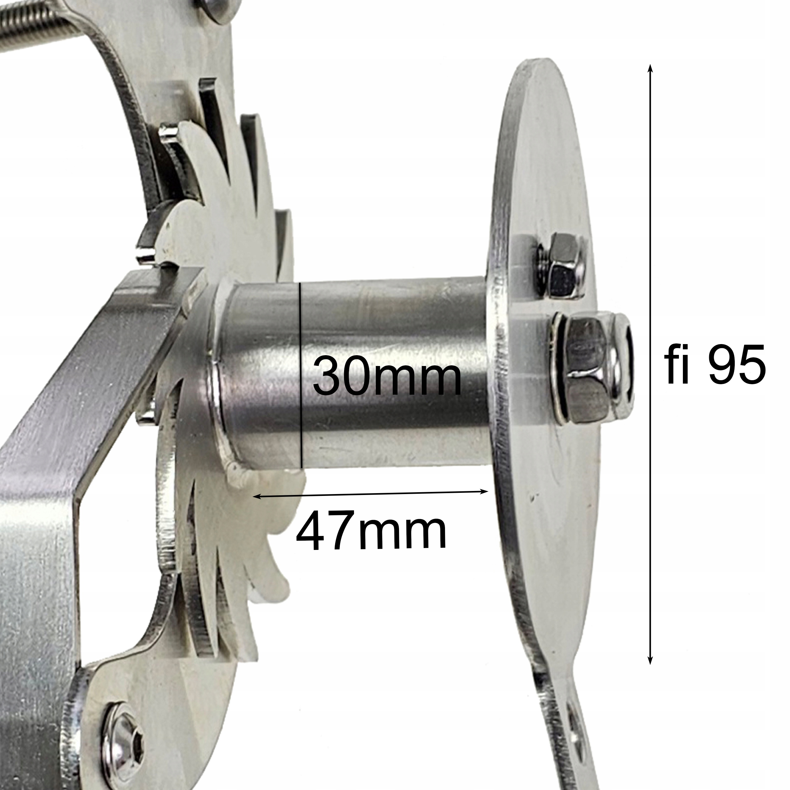 Купівля штатива на нашому аукціоні, ви отримаєте спеціальний повзунок, встановлений на нозі (труба Fi 25) для встановлення такої котушки з гвинтами M8 з гвинтами M8 з нержавіючими фланцевими гайками.