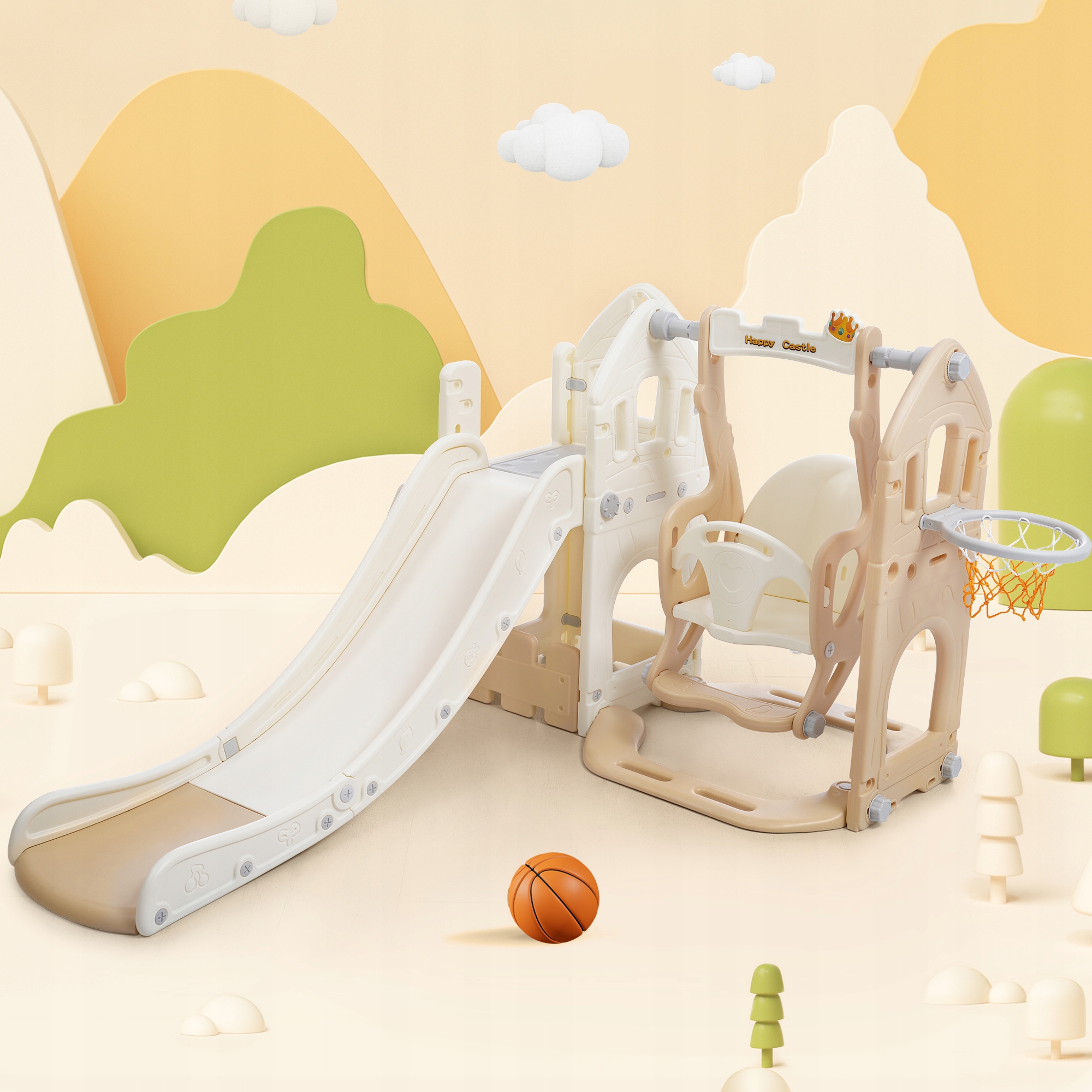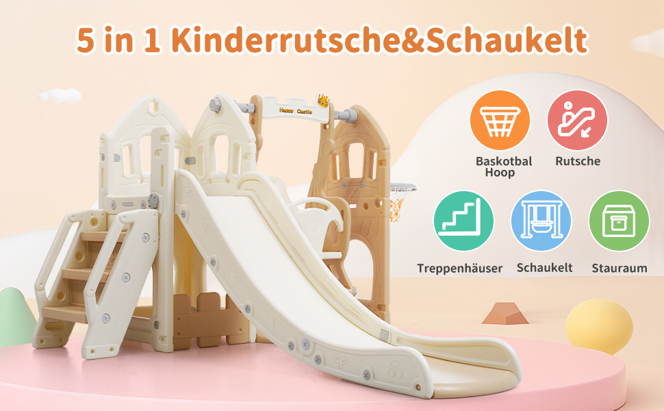 - Відкрийте для себе найкращу дитячу гірку, яка пропонує більше, ніж просто ковзання! Ця дитяча гірка 5 в 1 принесе різноманітність і веселість у гру ваших дітей. Завдяки гірці, гойдалці, сходам, баскетбольному кільцю та практичній шафі в одному, він пропонує нескінченні розваги та стимулює фізичну активність.