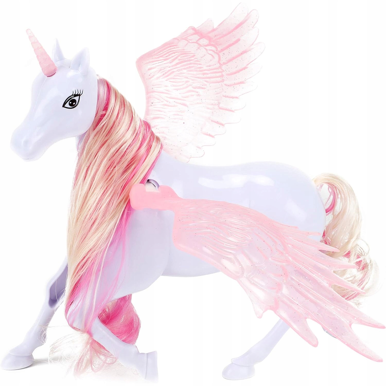 Казковий єдиноріг із рожевими крилами та довгою світлою гривою ідеально підходить для казкової гри в дитяча кімната. Рухома голівка та красиві рухомі крильця гарантують захопливу розвагу кожній дівчинці. Красива фігурка буде красиво виглядати в дитячій кімнаті.