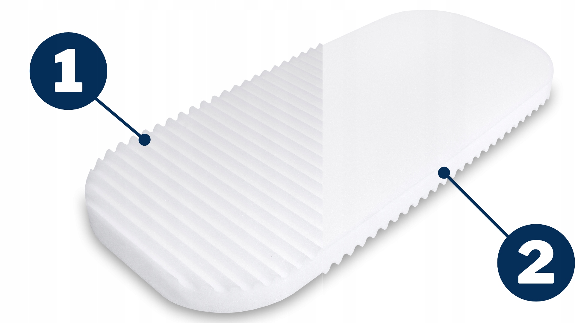 1. Профіль хвиліврізаний у піну з одного боку матраца пом’якшує її до жорсткості H2 (середньої жорсткості) та покращує вентиляцію, забезпечуючименше поту для користувача