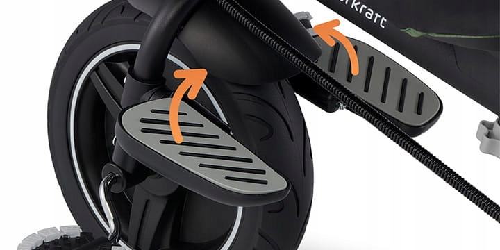 Переднє колесо може рухатися незалежно від педалей, завдяки цьому простому рішенню Spinstep перетворюється на стильну коляску, в якій батьки повністю контролюють швидкість і напрямок руху.