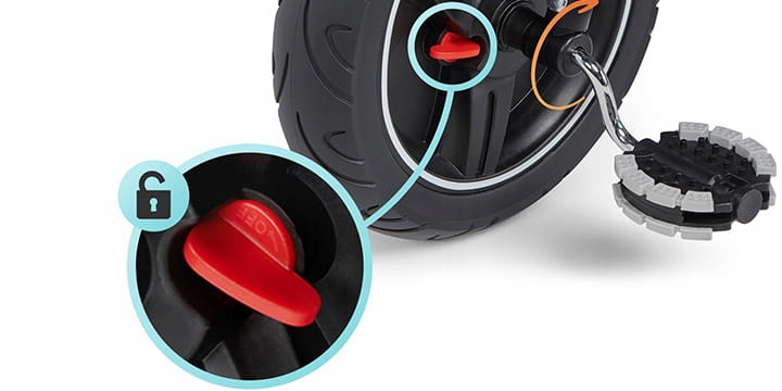 Переднє колесо може рухатися незалежно від педалей, завдяки цьому простому рішенню Spinstep перетворюється на стильну коляску, в якій батьки повністю контролюють швидкість і напрямок руху.