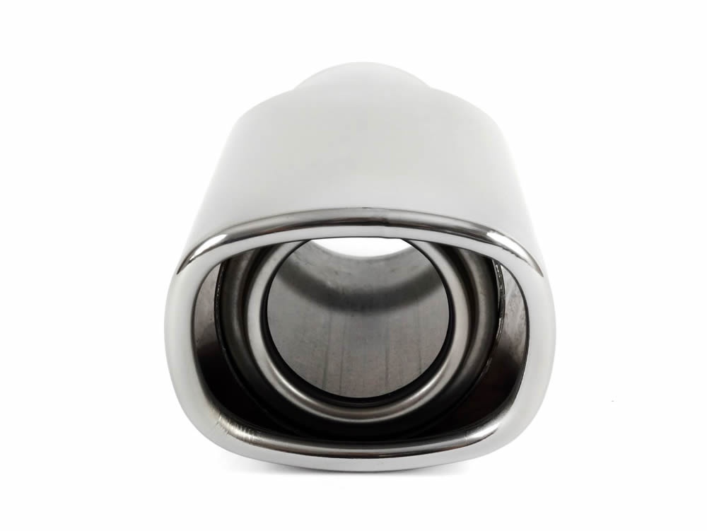 Наконечник глушника AMIO, модель MT015, форма кругла, овальна - прямокутник, фаска (діаметр 81/66мм). Виготовлений з високоякісної нержавіючої сталі, яка забезпечує стійкість до погодних умов, вихлопних газів і високих температур.