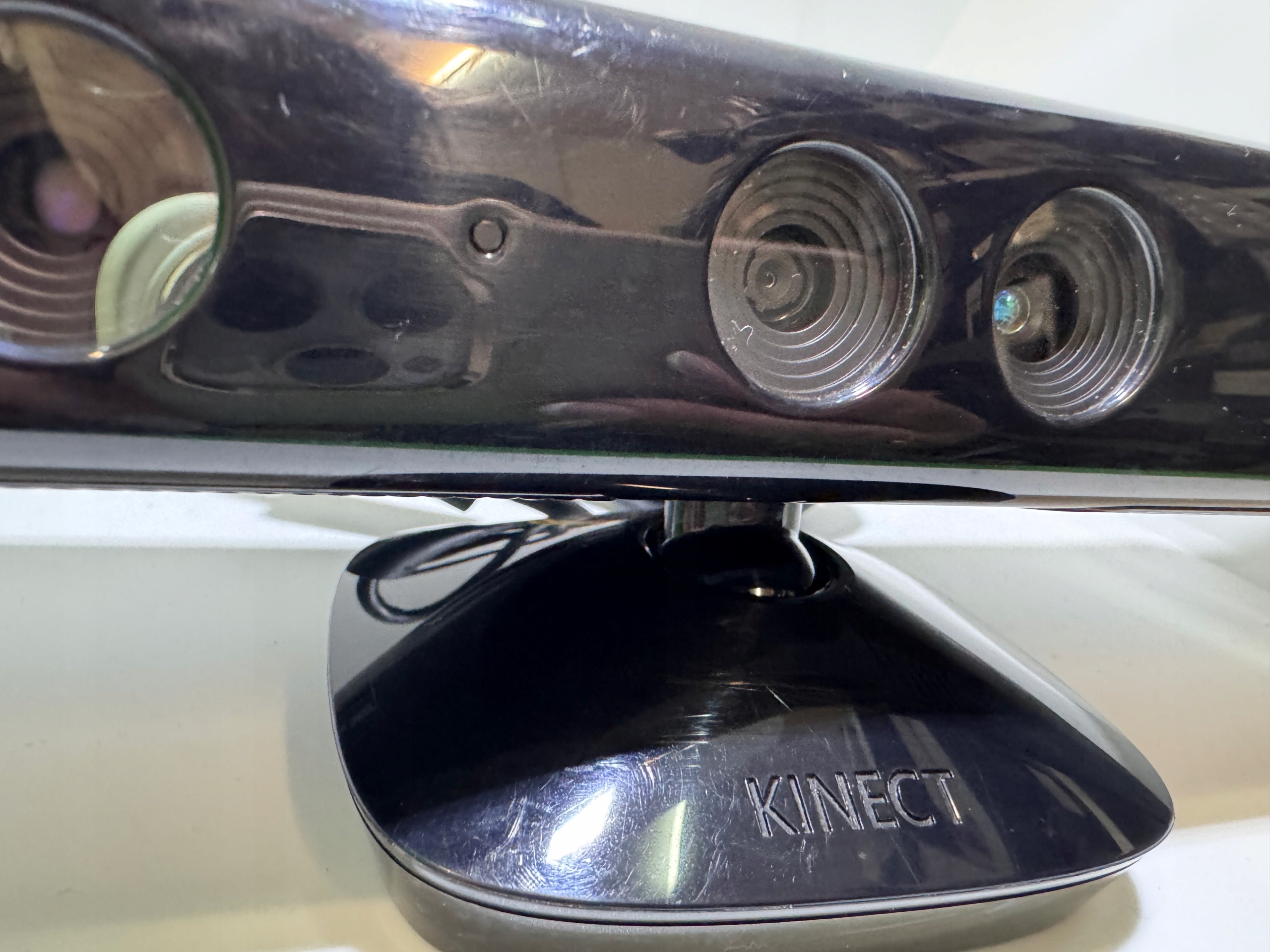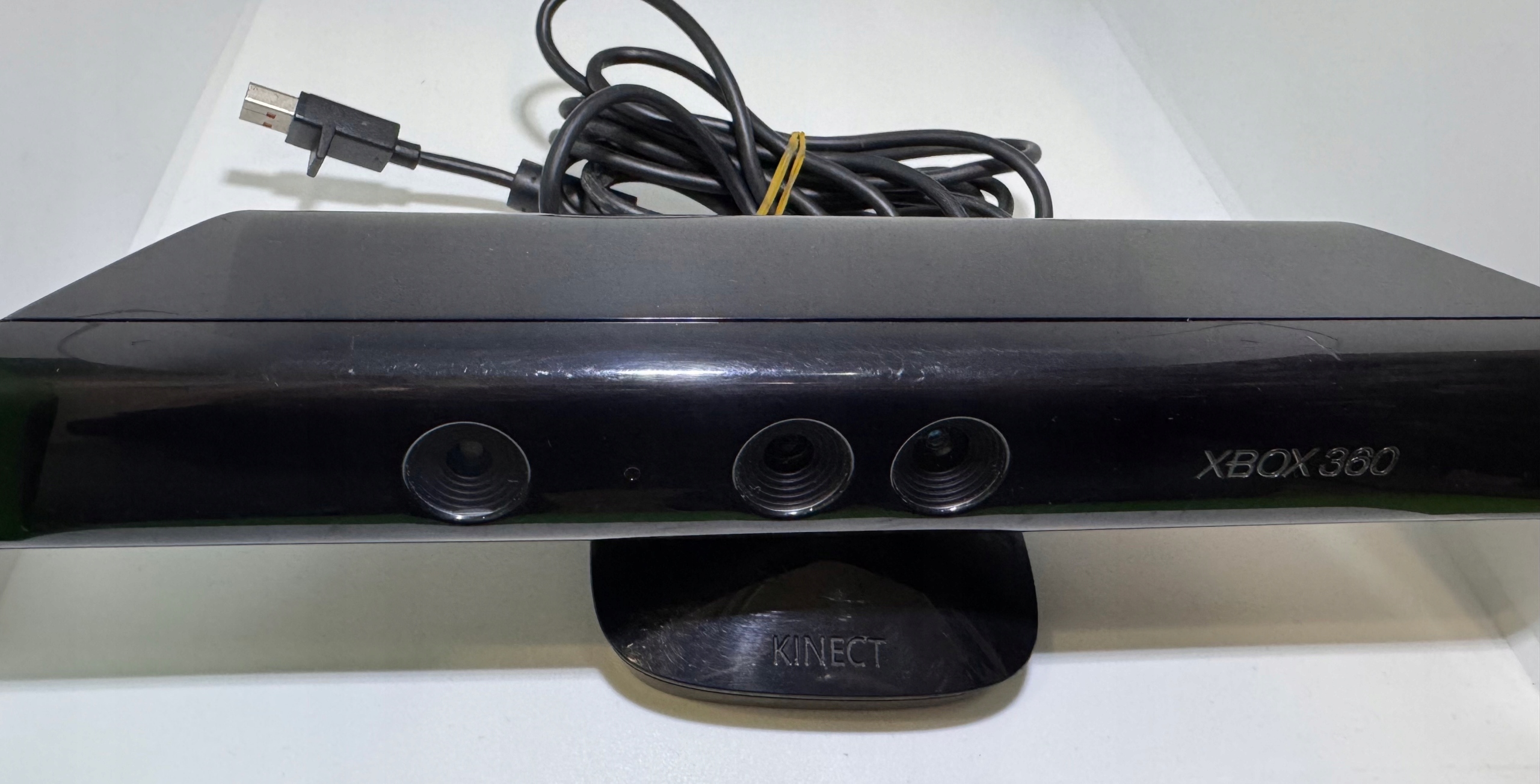 Kinect має численні сліди використання та подряпини, ефективні. Microsoft. Пристрій дозволяє користувачеві взаємодіяти з консоллю, не використовуючи контролер, через інтерфейс, використовуючи жести, виконані за допомогою кінцівок та всього тіла, а також за голосовими командами.