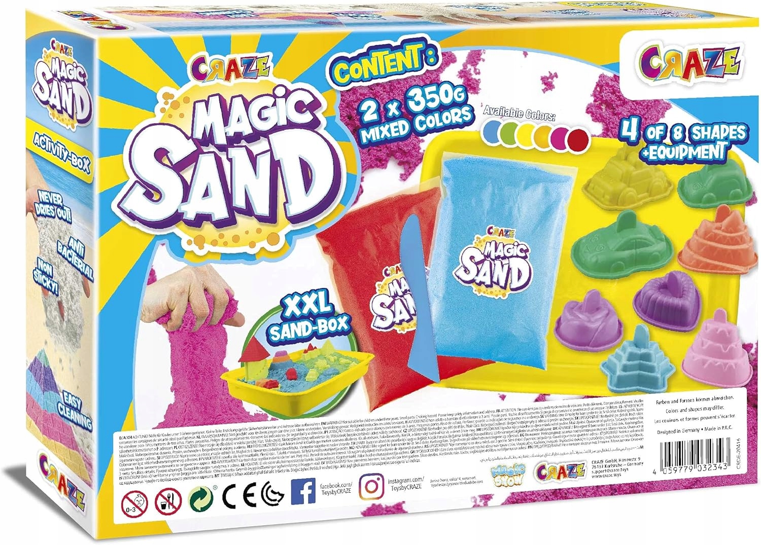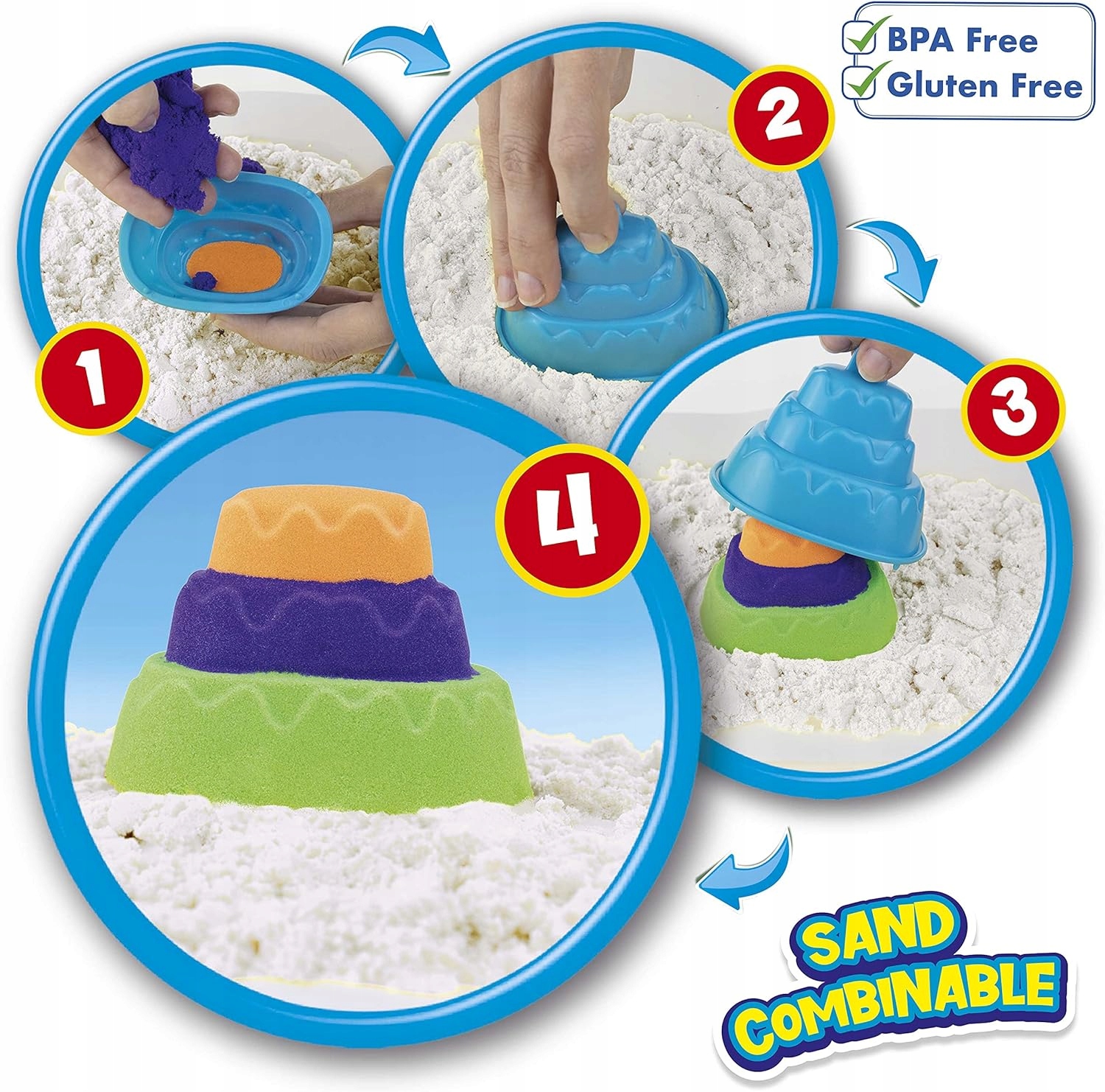- Вміст: прибл. 700 г піску: 2 х 350 г (різні кольори), 4 X форми, 1 х ванна XXL та 1 х моделювання шпателя