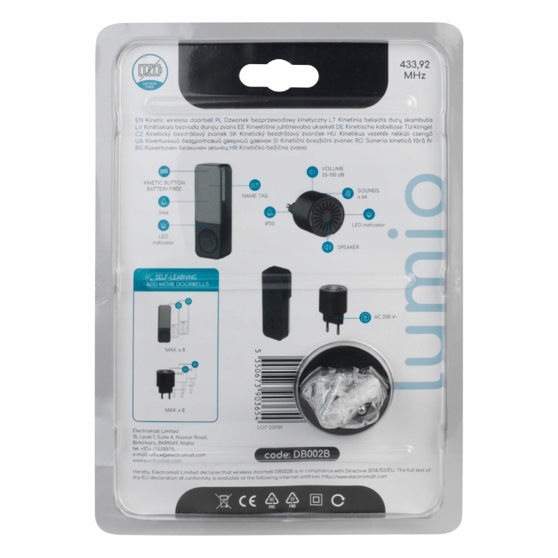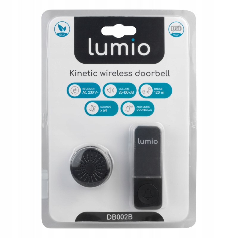 Кінетичний бездротовий дзвін, приймач AC 230 В, чорний, Lumio