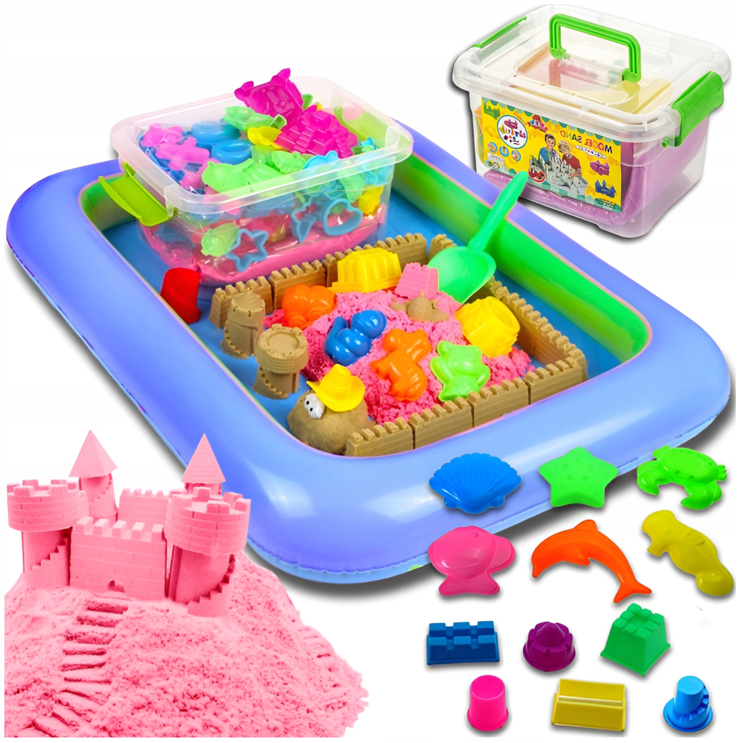 КІНЕТИЧНИЙ ПІСОК 3кг + ФОРМИ ЧАРІВНИЙ НАБІР ПІСОЧНИЦІ ДЛЯ БАСЕЙНУ АКСЕСУАРИ