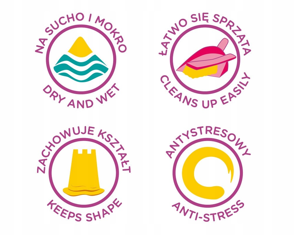 Гри з піском ніколи не викликали такого звикання! UltraSand зберігає свої властивості і підходить як для сухої, так і для водної гри. Після формування він зберігає свою форму! Це фантастична антистресова гра, яка подарує дітям унікальний сенсорний досвід. Легко чиститься і не залишає плям. Він досягає своїх найкращих властивостей при температурі приблизно 26 градусів C.