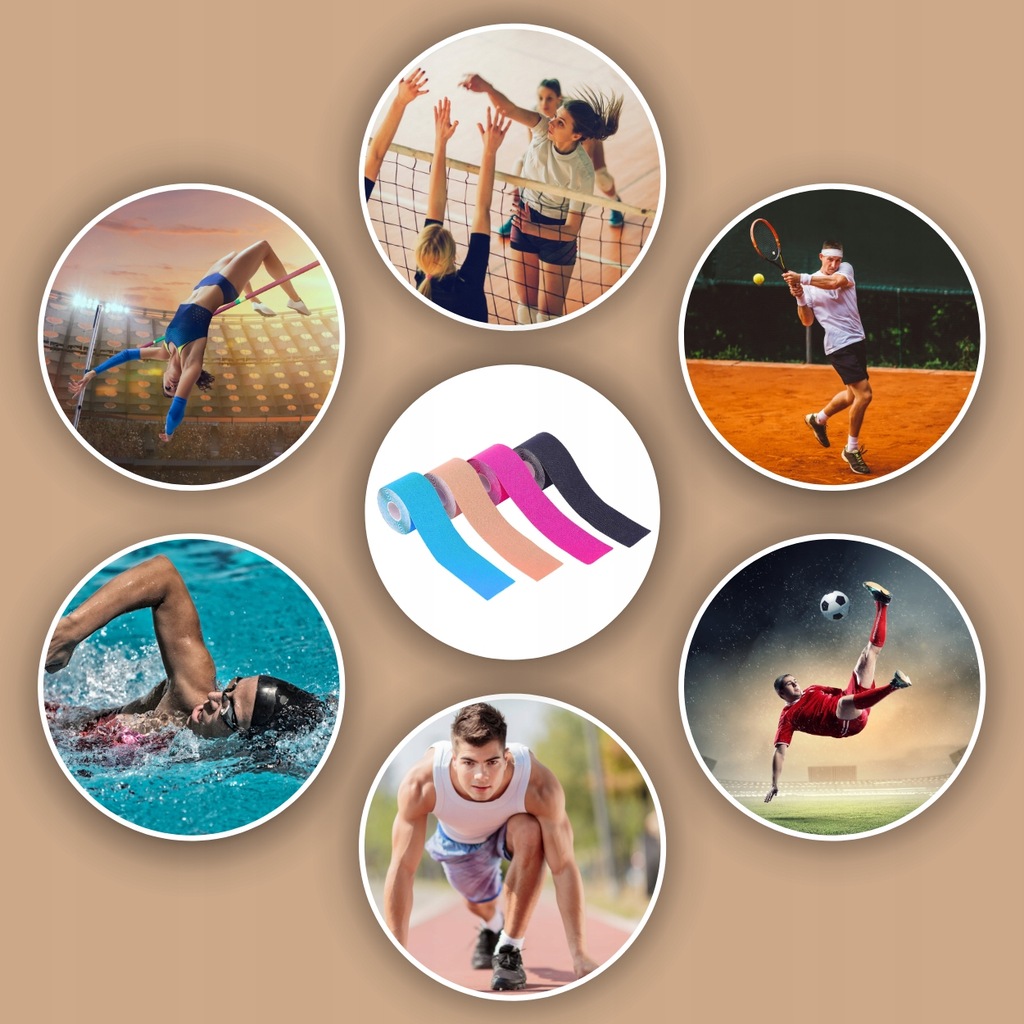 Кінезіологічні тейпи 5 м набір 4 штtejps для спортивного тейпування та реабілітаціїє професійними пластирами для підтримки м'язів і суглобів під частренувань, реконвалесценції або повсякденного життя активності. Використовуються фізіотерапевтами, спортсменами та людьми після травм, вони допомагають полегшити біль, покращують кровообіг і стабілізують м’язи та суглоби, не обмежуючи руху.