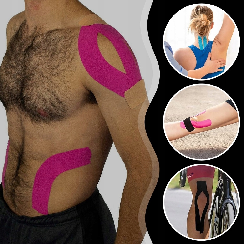 Гнучкий матеріал ідеально адаптується до тіла, забезпечуючи повну свободу рухів. Стрічки водонепроникні, дихаючі та залишаються на шкірі протягом кількох днів, забезпечуючи тривалий комфорт використання. Ідеально підходить для використання на плечах, колінах, спині, литках і зап’ястях.