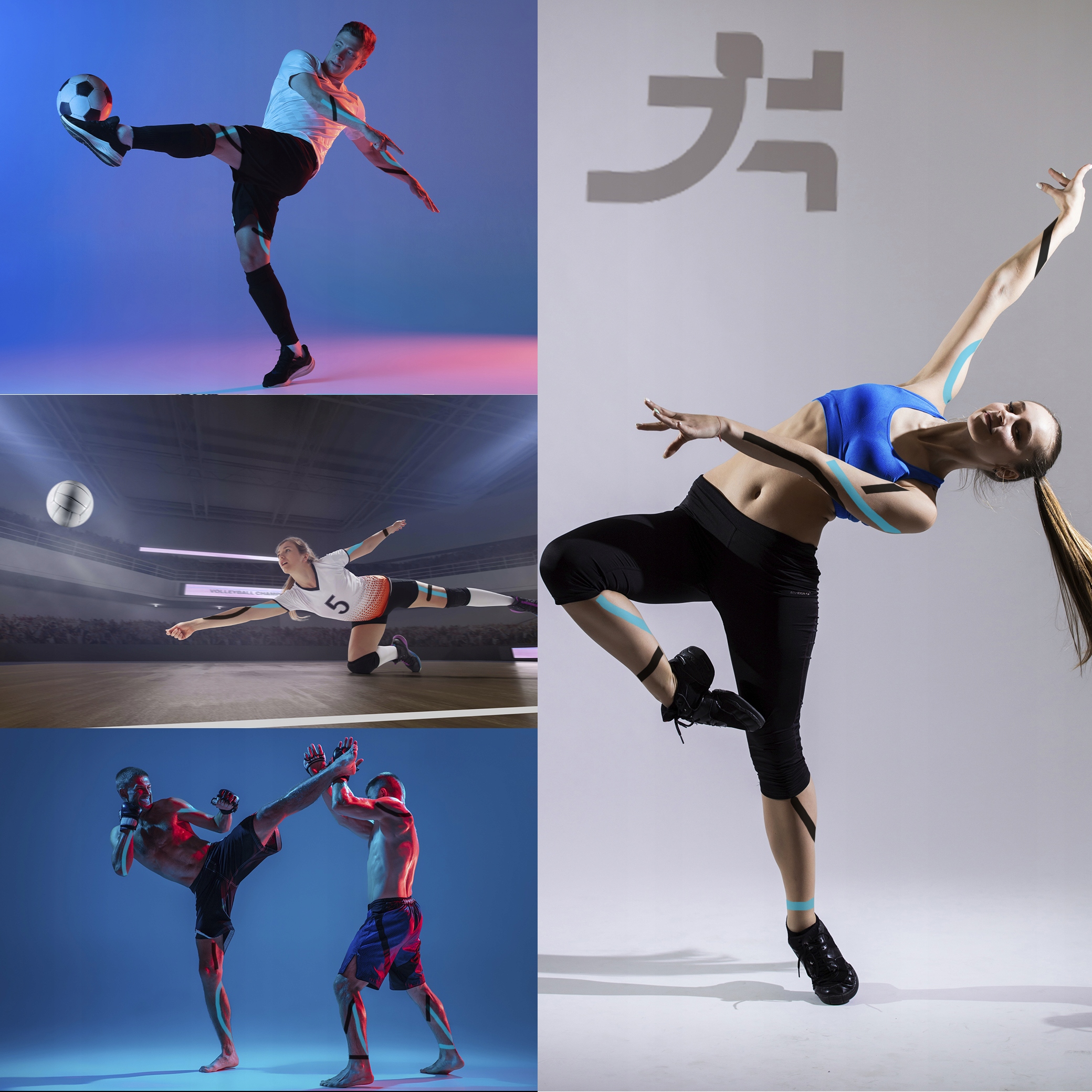 - Використання у спорті: тейпи мають вирішальне значення для запобігання та лікування розтягнень, підтримки зв’язок і колінної чашечки, особливо у видах спорту, де підвищується ризик травм.