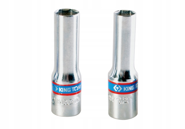 РОЗЕТКА ДОВГА ТОНКОСТІННА King Tony 3/8" 12 мм x 65 мм 6-точкова, ДЛЯ СВІЧОК НАКАЛУ, ХРОМОВАНА