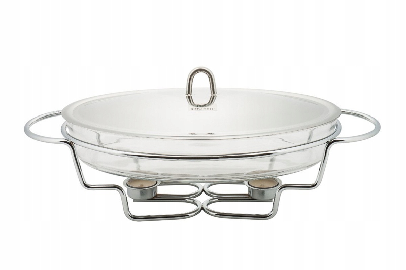 Жароміцний овальний посуд ємністю 3 л з нагрівачем. Виготовлений із загартованого скла з кришкою з нержавіючої сталі, розміщений на стійкій металевій рамі з двома свічниками. Завдяки страві готове блюдо довше залишатиметься теплим і буде смачно виглядати на столі.