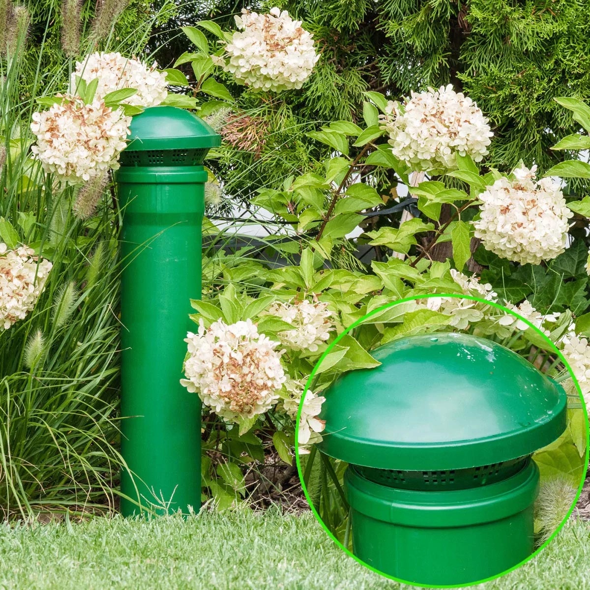 Щоб покращити естетичність саду, кожну нитку слід завершити вентиляційним отвором. Щоб очисна споруда гарно вписувалася в сад, ми замінили сірі, непривабливі витяжні отвори на зелені, які будуть гармоніювати з садом. Щоб збільшити їхню довговічність, ми використали матеріал, стійкий до УФ-випромінювання