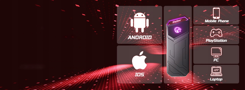 KingSpec Зовнішній SSD Портативний 2 ТБ USB 3.2 RGB