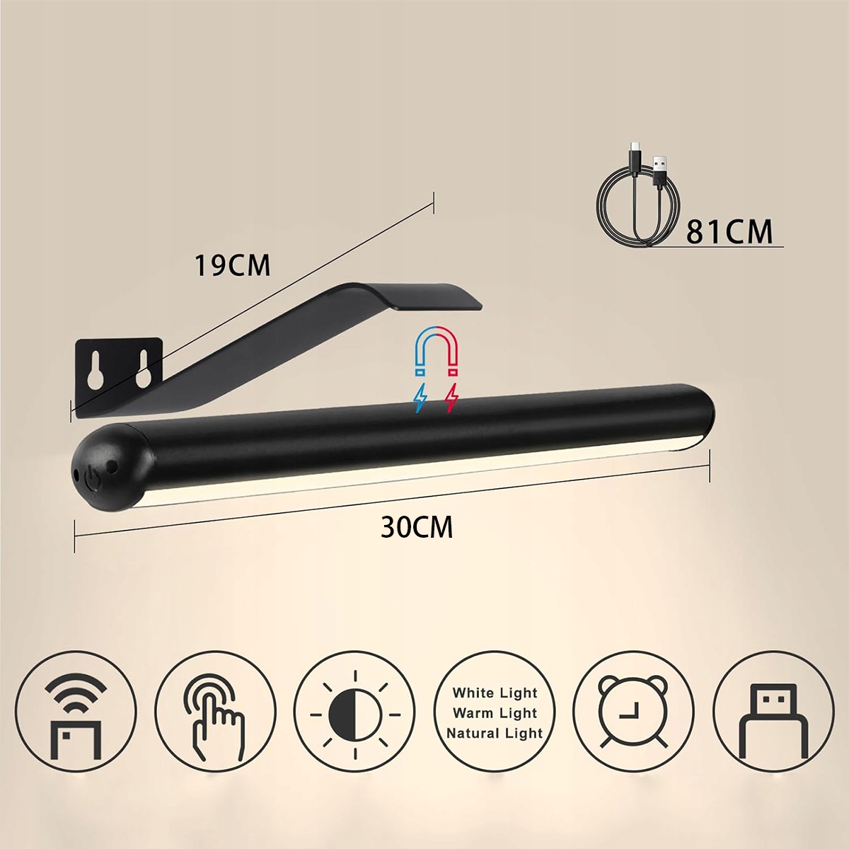 Kinkiet LED łazienkowy Lampa nad lustro 30cm REGULOWANY USB C