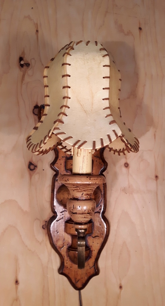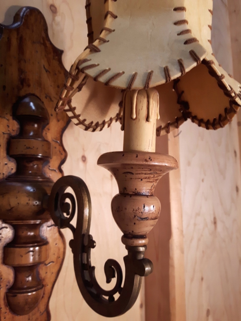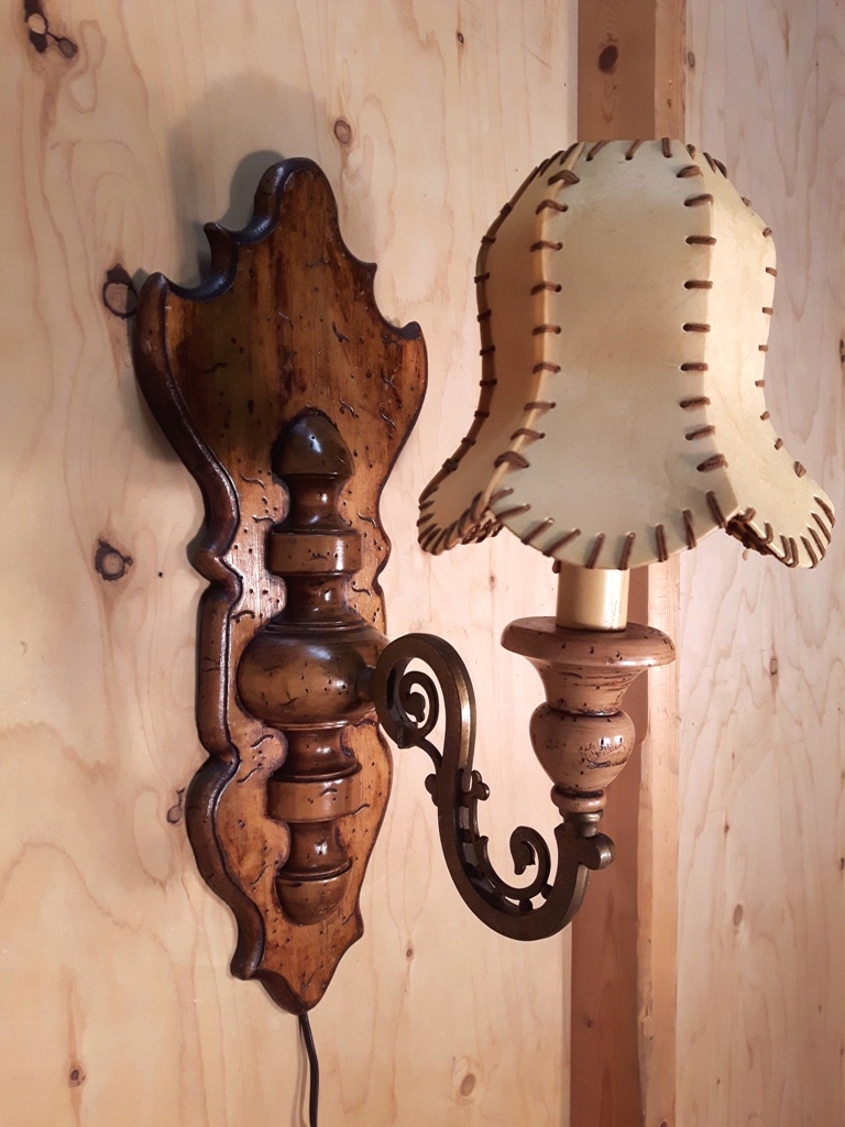 KINKIET Z MOSIĄDZU I DREWNA