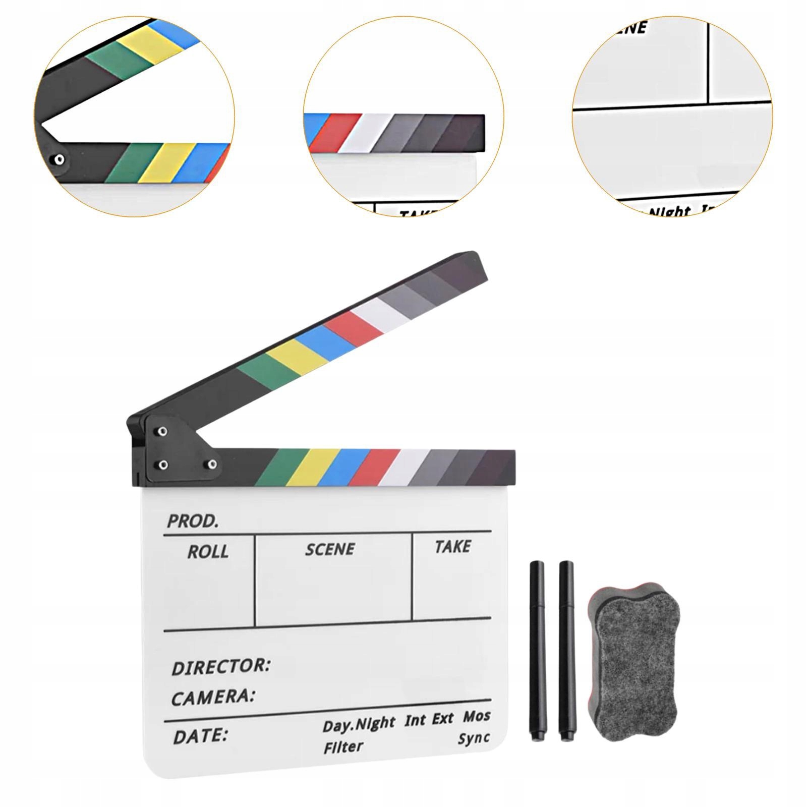 [Широке застосування]: Clapperboard — це чудовий предмет, телевізійні серіали, живі дії, реклама, студійна зйомка, реклама, художні фільми, реквізит для цифрової фотографії тощо
