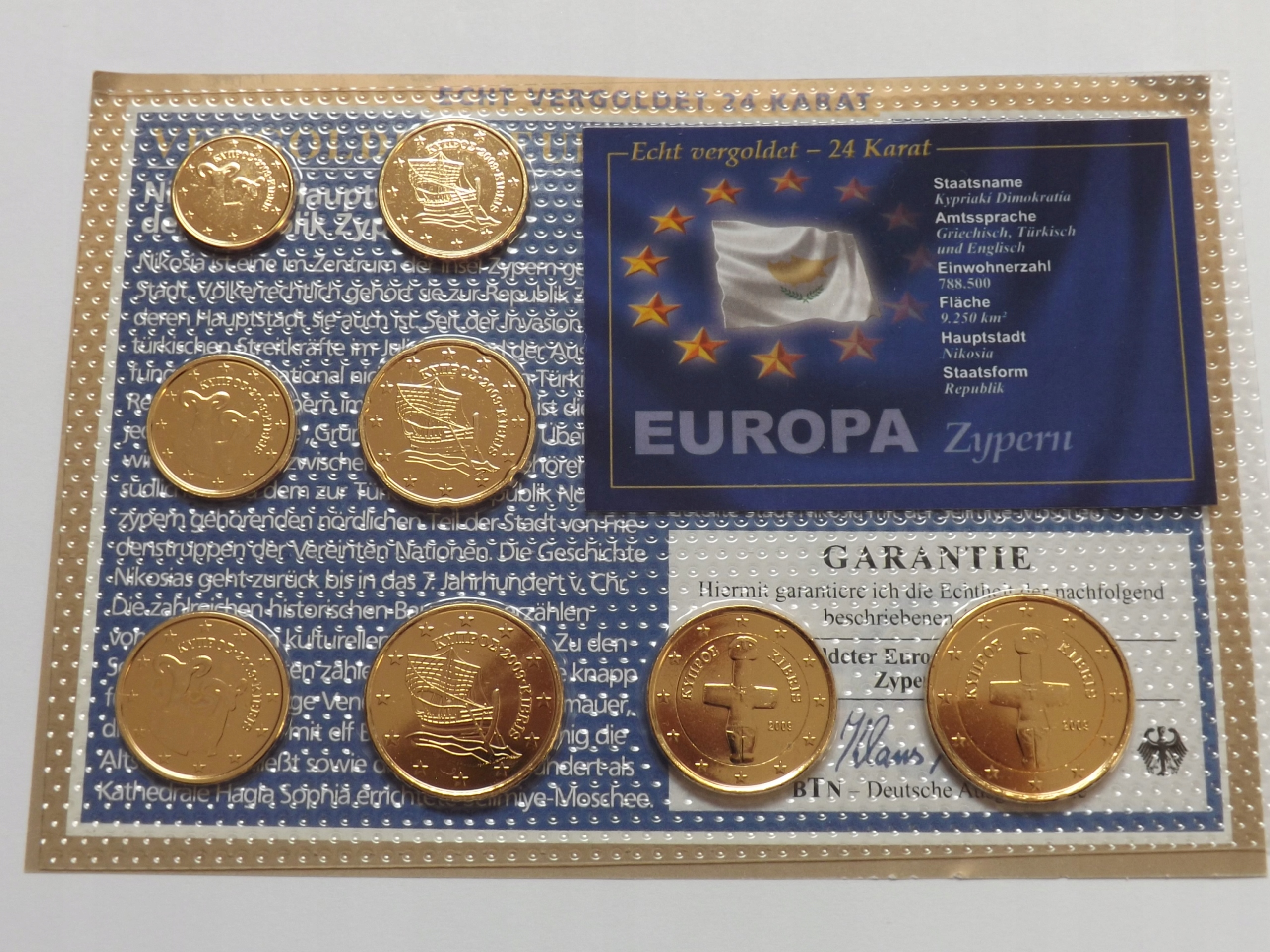 Кіпр 2009 Набір обігових монет євро, позолочені 24 карата, 8 х UNC