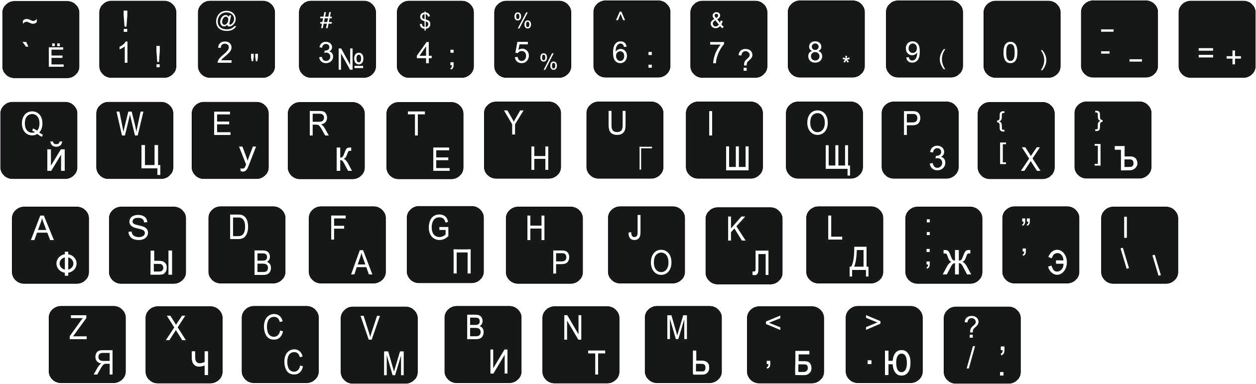Кирилиця + QWERTY наклейки для клавіатури 13x13