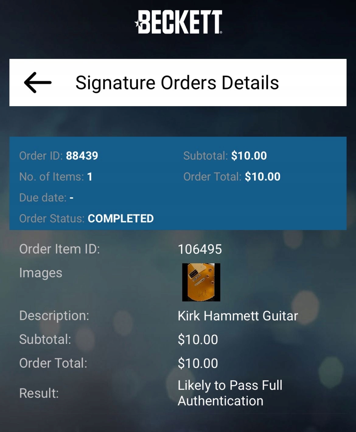 Сертифікація: попередня онлайн-сертифікація Beckett і сертифікат автентичності автографа, виданий американською компанією AUTOGRAPHCOA.
