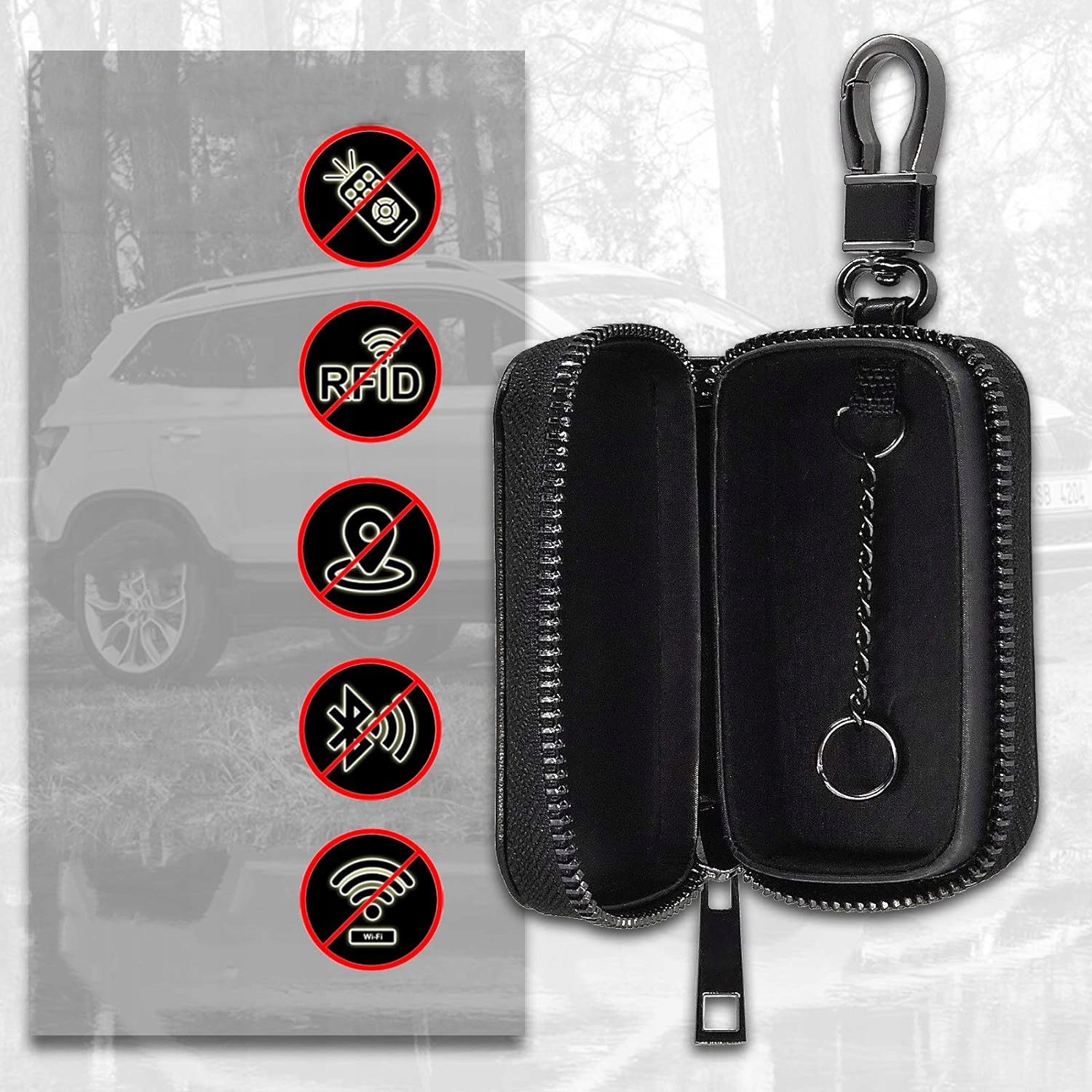 🚗【 зручно носити】 Наша сумка, що блокує сигнал, має розміри 10,2 х 6,5 см і може бути дуже зручним для використання щодня. Правильний розмір, щоб поміститись у кишені, ідеально підходить для щоденних подорожей та щоденних робіт. Корпус блокування сигналу захищає ваш автомобіль.