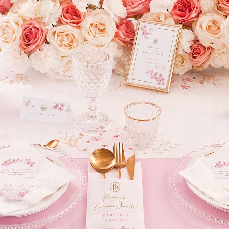 - Ви можете легко створити ефектне сервірування столу для Першого Причастя дівчини. Персоналізація на кишенях підкреслить важливість цього свята!