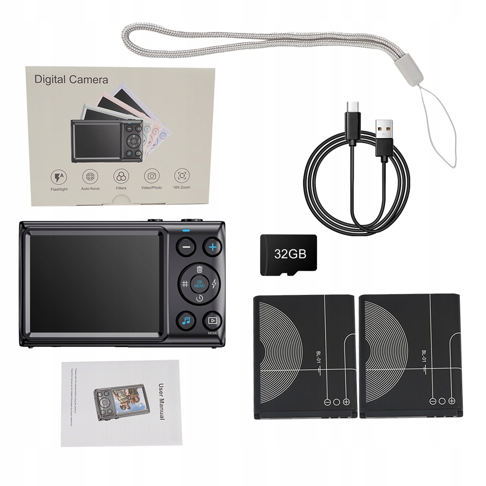 - ✅Цифрова камера 4K 64MP має 2,8-дюймовий екран і 18-кратний цифровий зум.