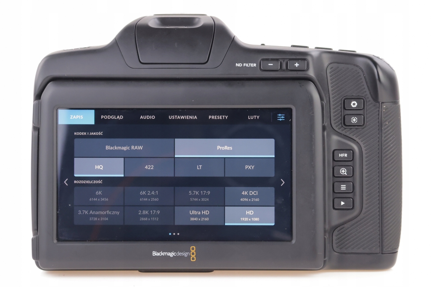 це технологічно вдосконалена цифрова камера, яка записує зображення в якості 6K із високою роздільною здатністю HDR 6144 x 3456 Super 35 сенсор, подвійний нативний ISO, кріплення для об’єктива EF і прямий запис на накопичувачі USB-C!Pocket 6K оснащений регульованим сенсорним екраном HDR, а виробник додатково оснастив камеру вбудованими ND-фільтрами. Найбільшою революцією є нова ємніша батарея, яка забезпечує довший час роботи. Ви навіть можете додати додатковий OLED-видошукач!