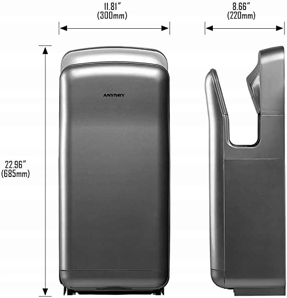 сушарка для рук anydry 2005H, електрична сушарка для рук, з губчастим фільтром, надпотужна, 1750-2050 Вт (срібло) Тепле холодне повітря!!