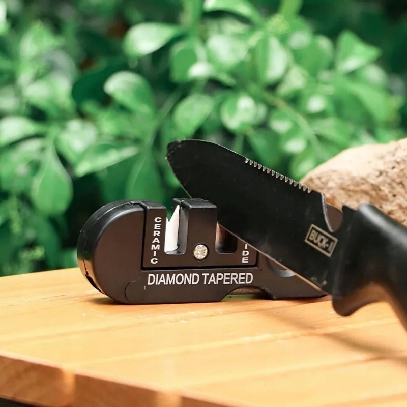 кишенькова точика для точного заточення ножів. Оснащений двома заточками та діамантовою градацією 600 для заточення зубчастих ножів, а також увігнутих лез. Це робить його універсальним інструментом для обслуговування леза в будь -яких умовах.