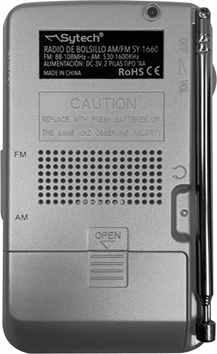 Кишенькова радіостанція Sytech Am-FM, гучномовець, вертикальна, срібляста