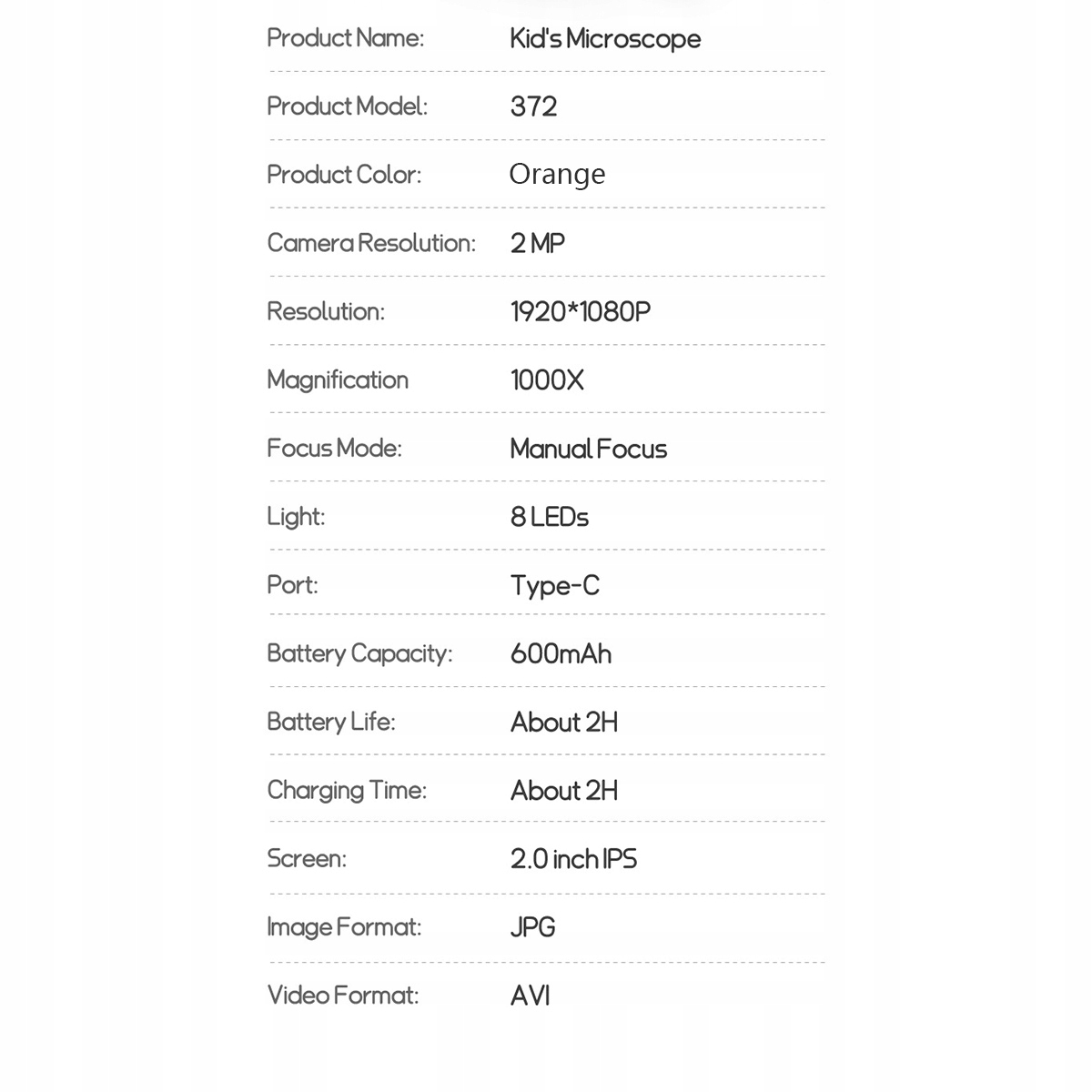 Уявіть яскраву усмішку вашої дитини, коли вона розгорне цей мікроскоп на свій день народження чи Різдво! Розроблений спеціально для допитливих людей віком від 3 до 8 років, він поєднує практичне навчання з розвагою. Цей мікроскоп надихне пристрасть до навчання та відкриттів і, безсумнівно, стане одним із улюблених подарунків вашої дитини.