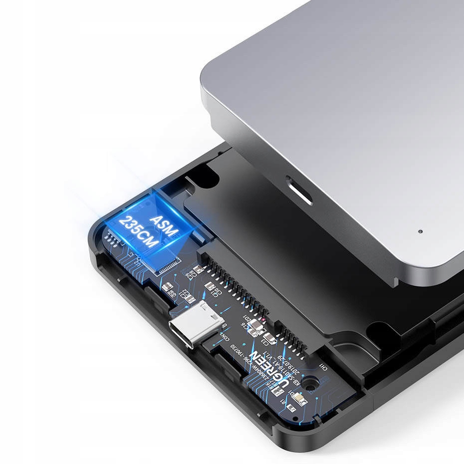 Відсік для дисків, корпус жорсткого диска 2,5 дюйма з інтерфейсом SATA 3.0 Ugreen - сірий (CM300) Алюмінієва кишеня Ugreen CM300 дозволить вам швидко та легко перетворити ваш 2,5-дюймовий жорсткий диск на зовнішній диск, готовий до підключення через порт USB типу C. Корпус підтримує швидку передачу даних до 6 Гбіт/с і сумісний з macOS, Системи Windows або Linux. Інтелектуальний чіп ASM235CM гарантує максимальну продуктивність і економію енергії. Специфікація: