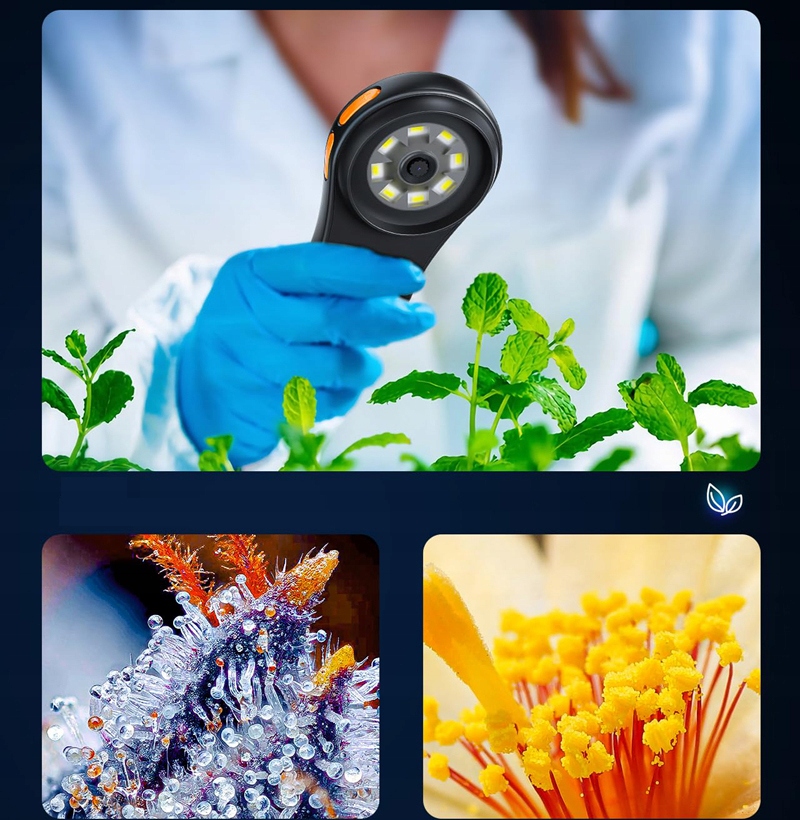 - Ручний цифровий мікроскоп 500x має 8 вбудовані світлодіодні світильники, що забезпечує достатню і навіть легку. Незалежно від того, чи це темне спостереження чи сцени, що потребують високої яскравості, цей ручний цифровий мікроскоп може легко впоратися з ним, забезпечуючи найкращу видимість у різних умовах, щоб ви могли бачити кожну деталь.