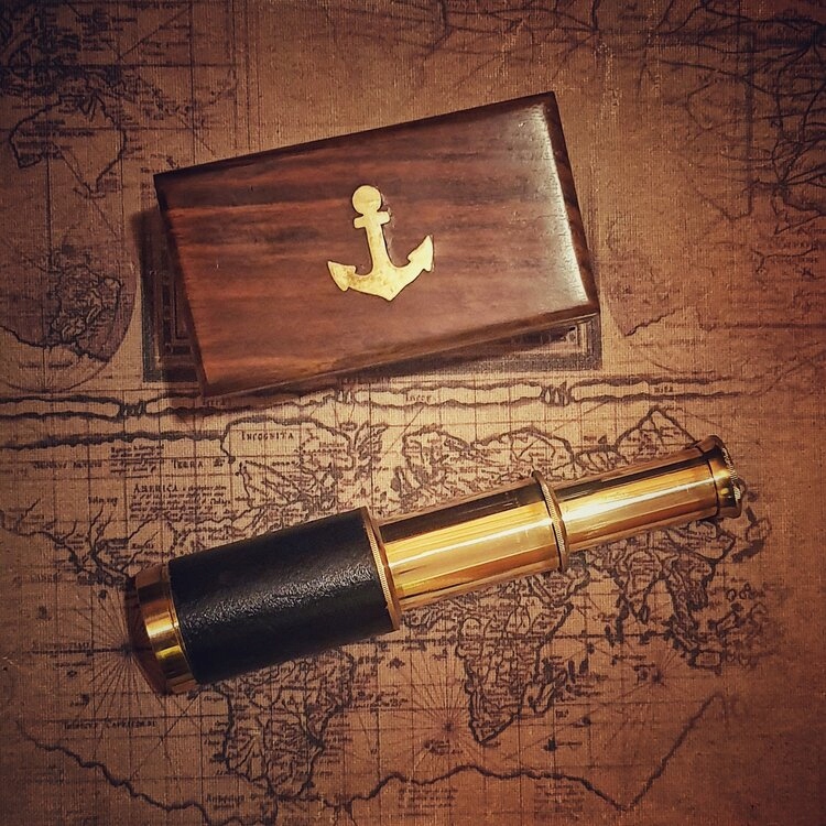 Морський телескоп із міцної латуні в дерев’яній коробці.
