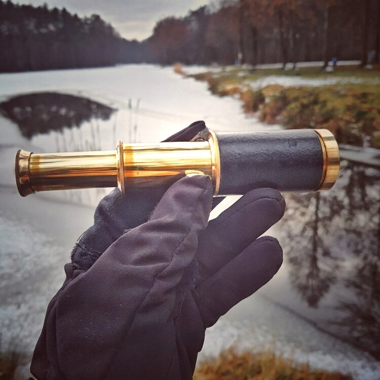 Кишеньковий латунний телескоп у дерев'яній коробці
