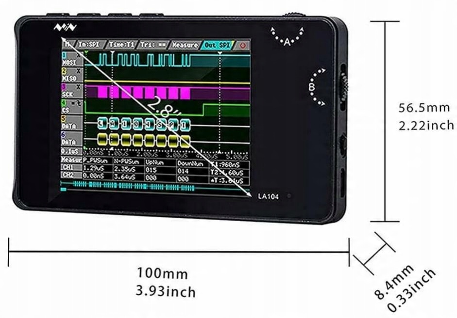 LA104 має швидкість збору даних до 100 МБ/с, 4 канали вхідного опору 1 МОм, що підходить для перевірки та налагодження цифрового обладнання, моніторингу, вимірювання та оптимізації.