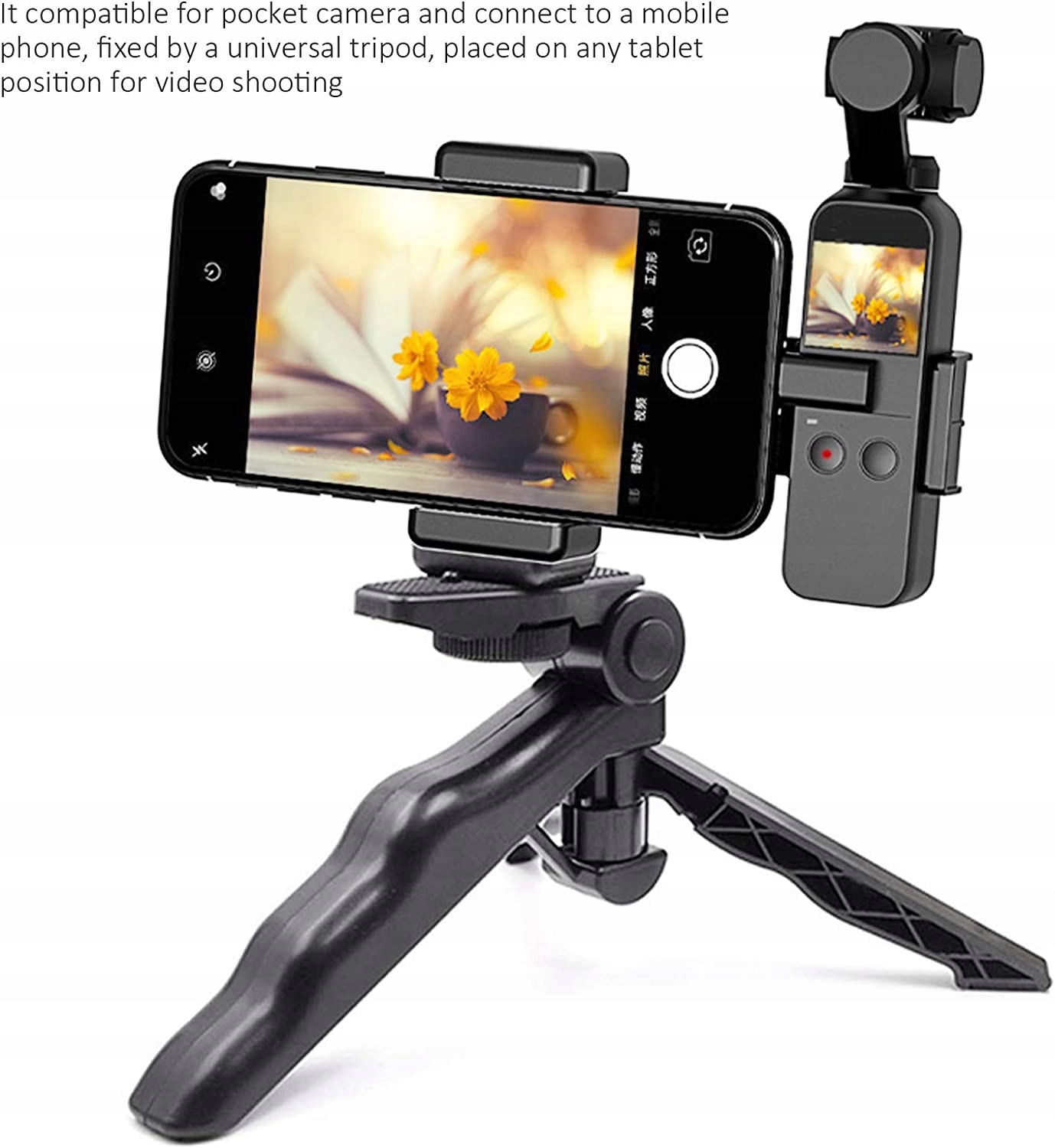 Вишуканий дизайн Штатив для кишенькової камери ідеально підходить для запису відео та відеоблогів у дорозі чи в приміщенні, добре працює з pocketx 05 OSMO та мобільним телефоном Два способи використання Цей тримач для мобільного телефону можна використовувати двома способами, щоб задовольнити різні потреби зйомки один тримається в руці, а інший — як штатив для мобільного телефону на столі. Стійкий і міцний. Цей штатив для мобільного телефону виготовлено з високоякісних матеріалів, він міцний і стабільний. Складаний і портативний. Цей штатив для телефону, сумісний із камерою OSMO Pocket 12, складається, його легко зберігати та дуже портативний Корисні інструменти для фотозйомки Дуже підходить для активного відпочинку на природі, наприклад пікніків у кемпінгу, записуючи прекрасні моменти з familyx 05 та друзями