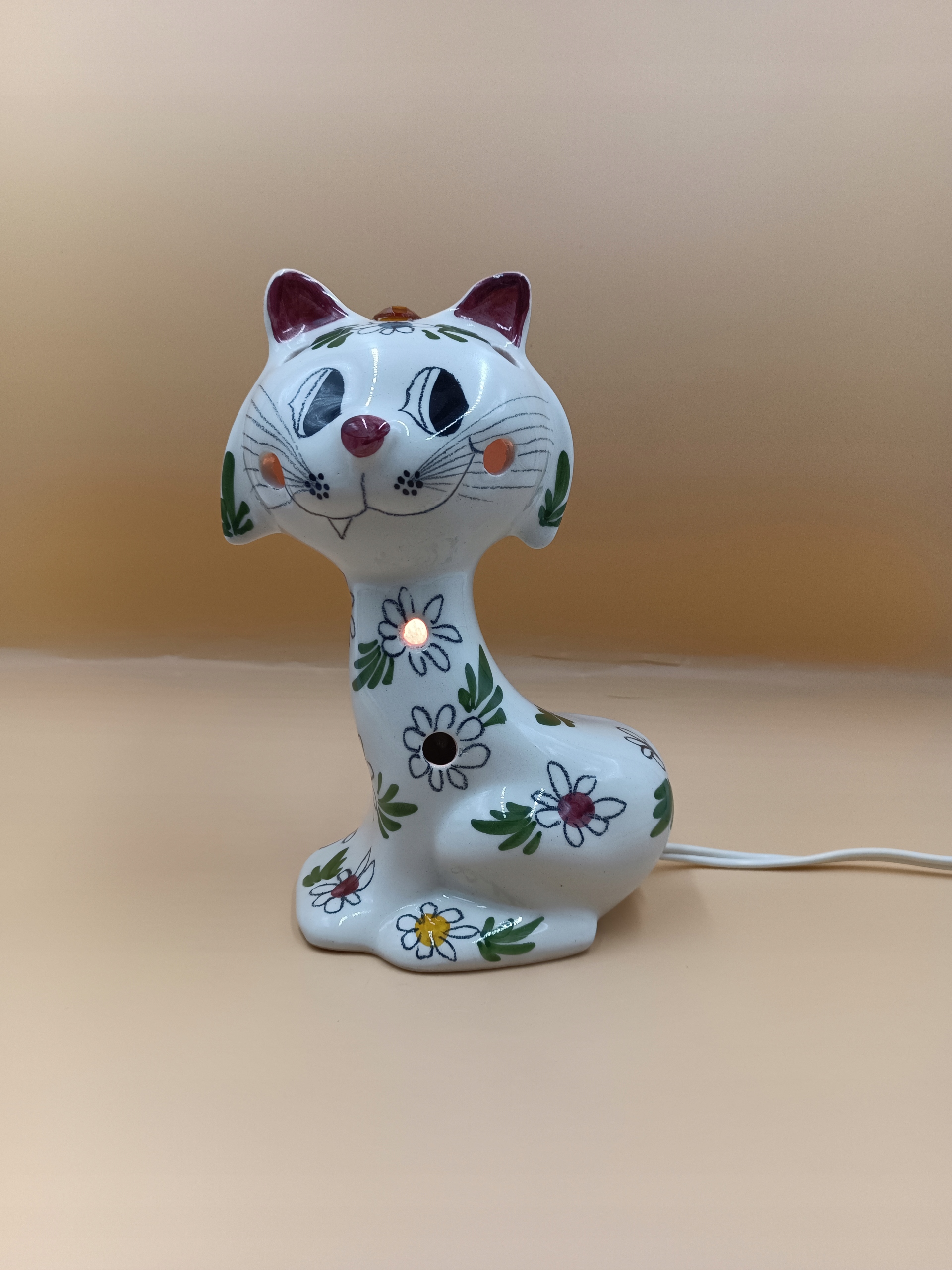 Кіт - УНІКАЛЬ - Італійська порцеляна - Нічна лампа - підписана - колекційна - 19 см